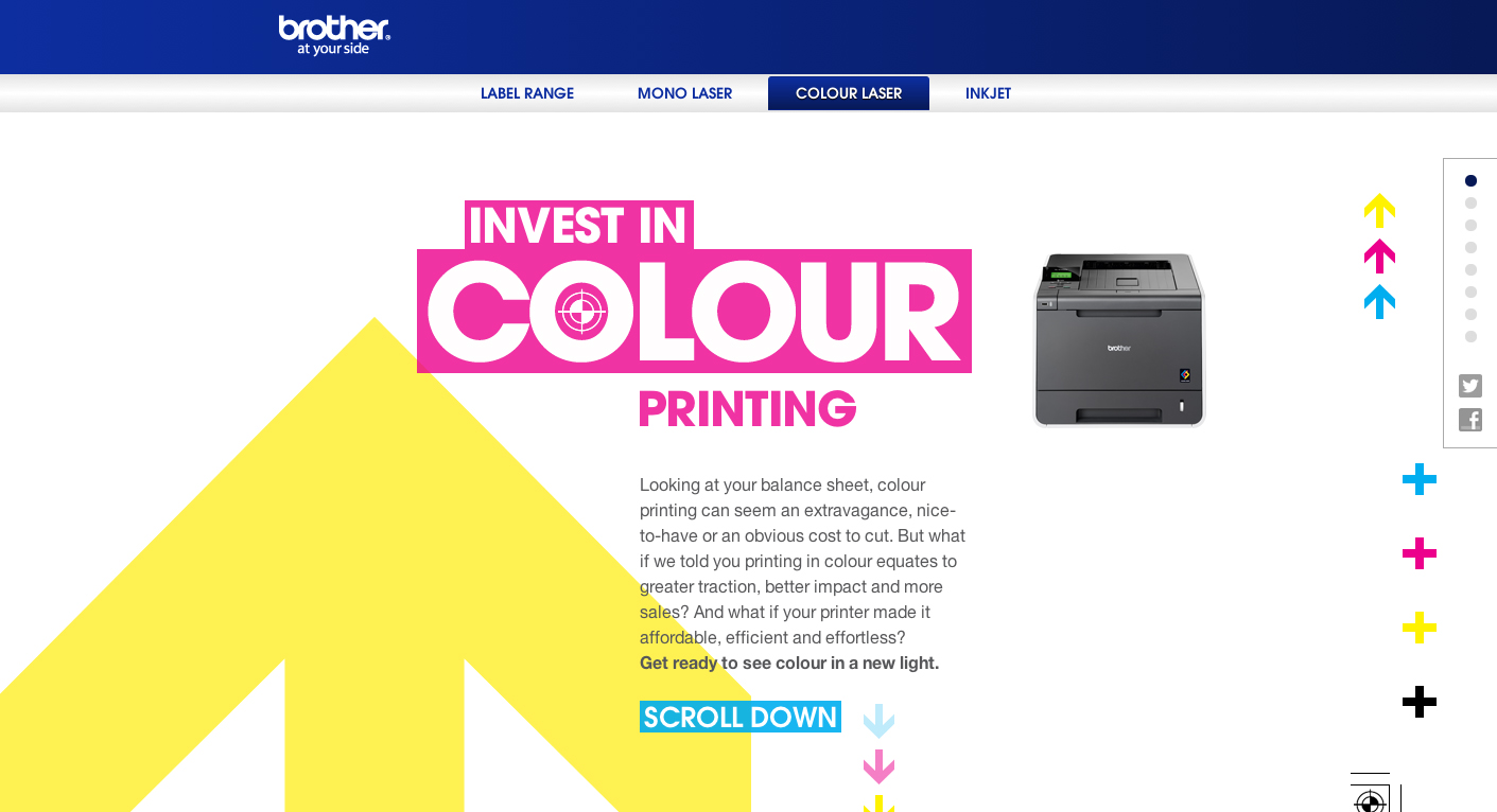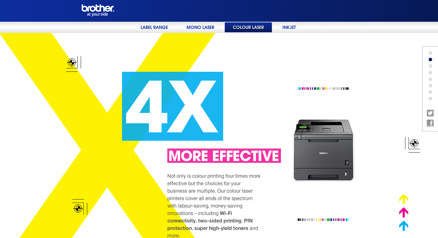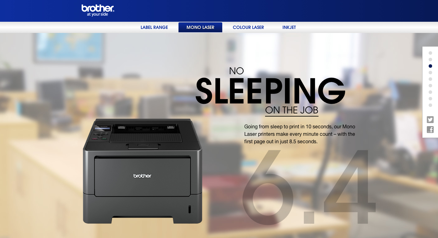 Brother Campaign Microsite: Brother wanted to create a campaign microsite to showcase several of their printers. Each model would be launched sporadically across a six month time frame. Our solution was to create a set of parallax scrolling sites that showcased the benefits and features of each product.
